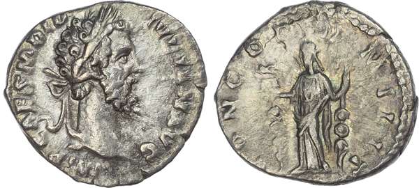 IMP CAES M DID IVLIAN AVG, laureate head of Didius Julianus right. Rev. CONCORD MILIT, Concordia standing facing, head left, holding two standards. (RIC 1; BMC 2). Good Very Fine. Scarce.