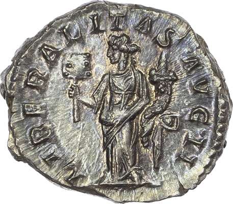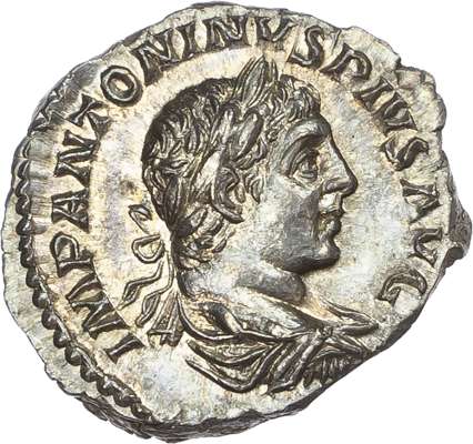 IMP ANTONINVS PIVS AVG, laureate and draped bust of Elagabalus right. Rev. LIBERALITAS AVG II, Liberalitas standing left, holding abacus and cornucopiae. (RIC 99; BMC 148). Good Extremely Fine. Lustrous. An exceptional example.
