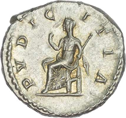 IVLIA MAESA AVG, draped bust of Julia Maesa facing right. Rev. PVDICITIA, Pudicitia seated left, holding sceptre. (RIC 268; RSC 36). Good Extremely Fine. Well-struck on a large flan.