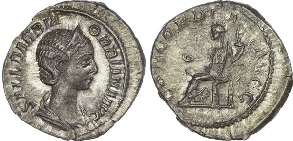 Orbiana, wife of Severus Alexander (AD 222-235) AR Denarius, mint of Rome, AD 235-237, 3.10g.