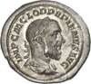 IMP C M CLOD PVPIENVS AVG, laureate, draped and cuirassed bust of Pupienus right. Rev. PAX PVBLICA, Pax seated left, holding sceptre and palm. (RIC 4; BMC 46). Extremely Fine.
