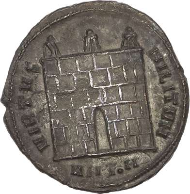 DIOCLETIANVS AVG, laureate head right. Rev. VIRTVS MILITVM, camp gate with three turrets, ANT.H in exergue. (RIC 37a; RSC 489c). Good Very Fine. Large fl an. Pleasing cabinet tone.