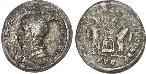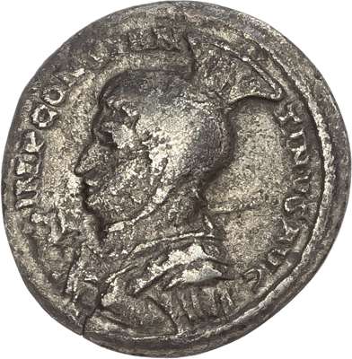 IMP CONSTANTI-NVS AVG, helmeted and cuirassed bust left, holding spear over shoulder. Rev. VICTORIAE LAETAE PRINC PERP, two Victories facing one another, holding shield inscribed ‘VOT / P R’, PTR in exergue. (RIC 208A; RSC 643). Fine.