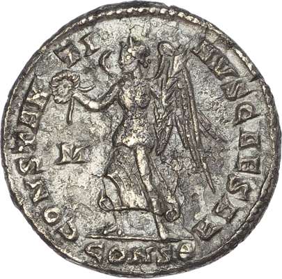 Diademed head of Constantine II right, looking upwards. Rev. CONSTAN-TI-NVS CAESAR, Victory standing left, holding wreath and palm, M to left, CONSE in exergue. (RIC 127; Ramskold (2018), 11 (this coin); RSC 72). Very Fine. Very Rare, four examples known to Ramskold.