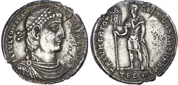 Constantius II (AD 337-361) AR Light Miliarense, Thessalonica, AD 340-350, 4.12g.