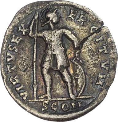 DN IVLIAN-VS P F AVG, diademed, draped and cuirassed bust right. Rev. VIRTVS EX-ERCITVS, Virtus standing left, head right, holding spear and shield, SCONST in exergue. (RIC 290; RSC 71a). Fine. Flan split. Rare. Pleasing cabinet tone.