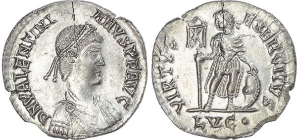 Valentinian II (AD 375-392) AR Miliarense, Lugdunum, AD 388-392, 3.85g.