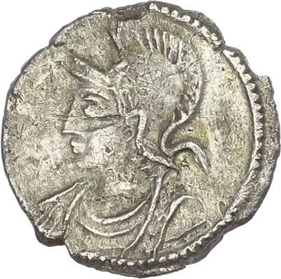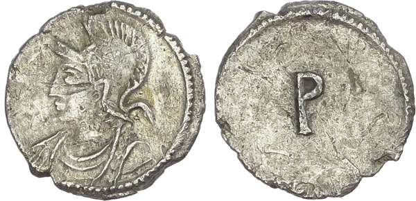 Helmeted and cuirassed bust of Roma left. Rev. P. (RIC -). Very Fine. Extremely Rare.