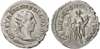 Description Radiate, draped and cuirassed bust right. Rev. Genius, wearing polos, standing left, holding patera and cornucopiae, standard and altar to left. (RIC 16c). Extremely Fine.