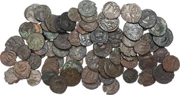 Group of 82 Late Roman AE3s and AE4s of the House of Theodosius. Various types, mostly Arcadius. Mostly Fine to Very Fine.