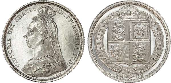 Victoria (1837-1901) Sixpence, 1887, withdrawn type.