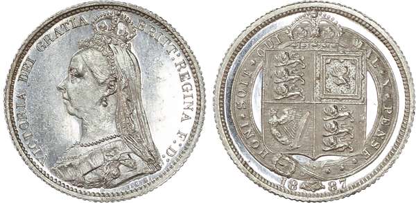 Victoria (1837-1901) Sixpence, 1887, withdrawn type.