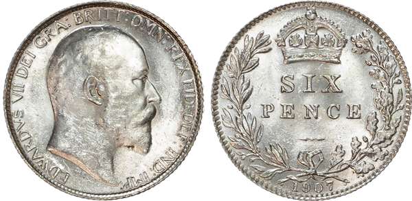 Edward VII (1901-1910) Sixpence, 1907.