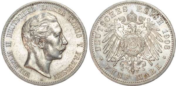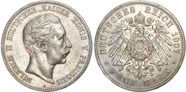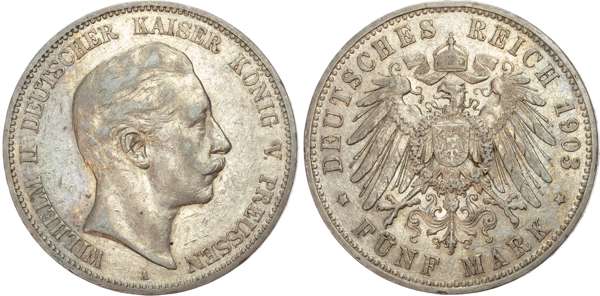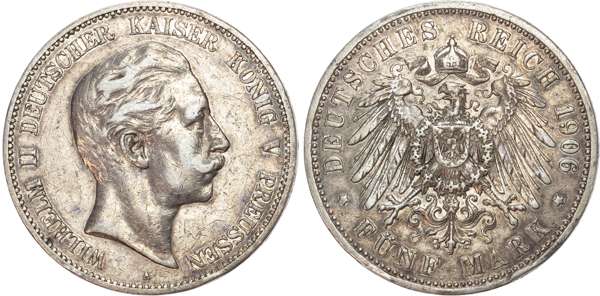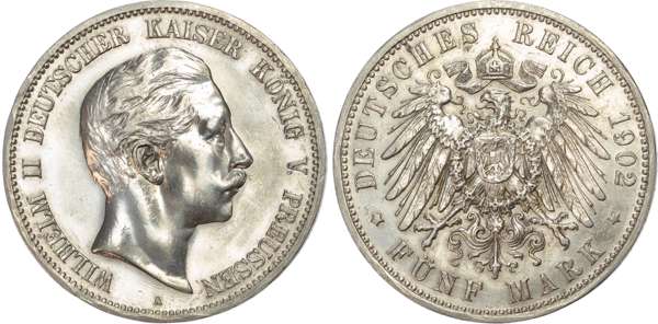 Germany, Prussia, Wilhelm II (1888-1918), silver 5 Marks (6).