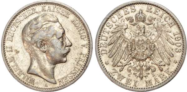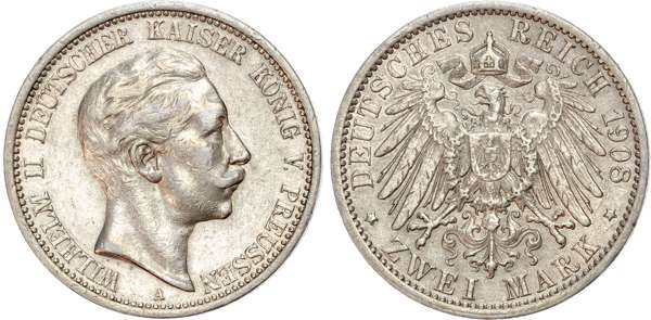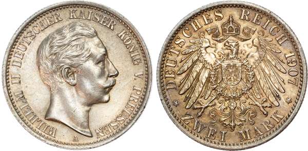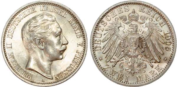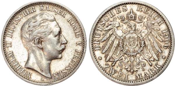 Germany, Prussia, Wilhelm II (1888-1918), silver 2 Marks (6).