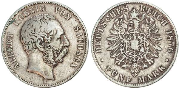 Germany, Saxony, Albrecht I (1873-1902), silver 5 Marks (2).
