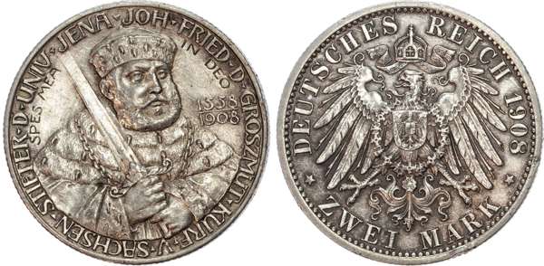 Germany, Saxony-Weimar, Wilhelm Ernst (1901-1918), silver 2 Marks (2).