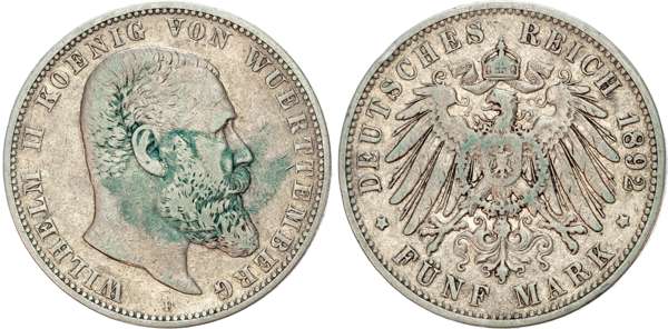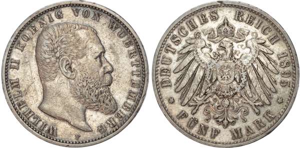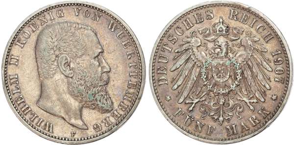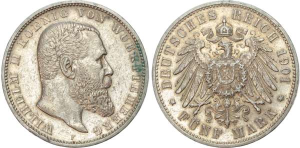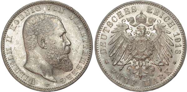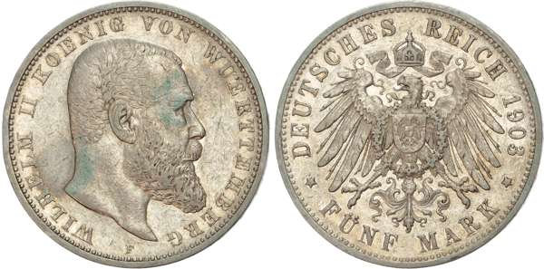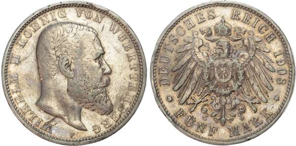 Germany, Württemberg, Wilhelm II (1891-1918), silver 5 Marks (8).