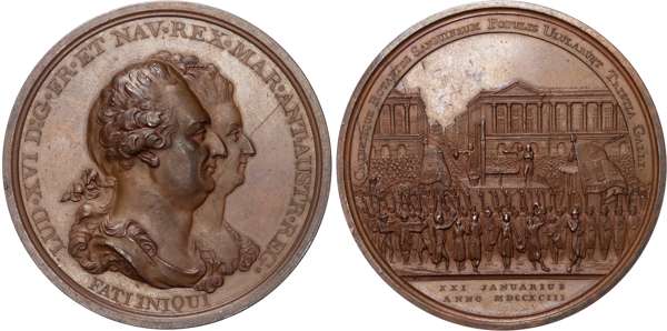 France, Louis XVI and Marie Antoinette (1774–1793), Execution of the King, copper medal (51mm/61.72gm), 1793, by Küchler