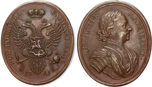 Russia, Peter I (1689-1725), Prut Campaign, oval bronze medal (41x36mm/34.03gm), 1711.