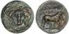 Ionia, Klazomenai (c. 386-301 BC) AE 18mm, 5.65g. Helmeted head of Athena facing slightly to the right. Rev. Ram walking right, thunderbolt to right. (SNG Copenhagen 85). Nearly Extremely Fine.