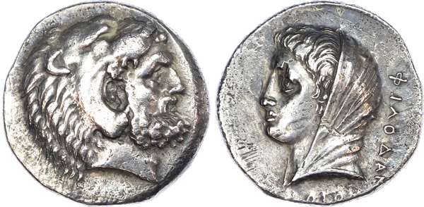 Islands off Caria, Kos (c. c. 345-340/30 BC) AR Tetradrachm, Philodamas, magistrate, 14.85g. Bearded head of Herakles facing right, wearing a lionskin headdress. Rev. ΦIΛOΔAM[AΣ], veiled female head facing left. (Stefanaki, Kos I, Series VI, 12th Emission, Group B, 512; Pixodarus 20c (this coin); HGC 6, 1303). Very Fine. Pleasing tone. Some scratches.