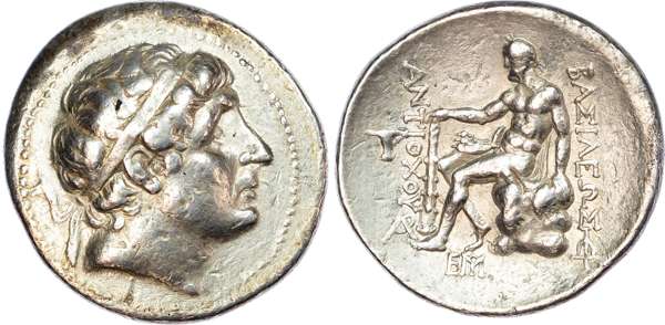 Seleukid Empire, Antiochos II Theos (261-246 BC) AR Tetradrachm, Kyme, 16.98g. Diademed head of Antiochos facing right. Rev. Herakles seated left on rock, holding club set on ground, cup in left field,
