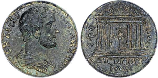 Antoninus Pius (AD 138-161) AE 31mm, Ephesus, 22.32g. Laureate, draped and cuirassed bust of Antoninus Pius right. Rev. Octastyle temple containing facing statue of Artemis Ephesia. (RPC 2249; L&K 461). Good Very Fine. Superb portrait.