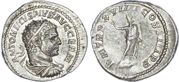 Caracalla (AD 198-217) AR Antoninianus, Rome, AD 216, 4.29g. Radiate and draped bust of Caracalla right. Rev. Serapis standing right, head left, holding sceptre and raising right hand. (RIC 280d). Good Very Fine. Attractive portrait, reverse somewhat weakly struck.