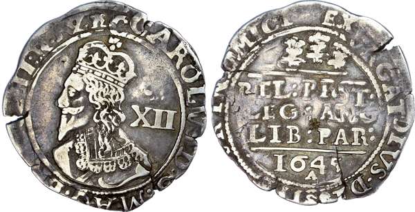 Charles I (1625-1649), Shilling, 1645, Ashby-de-la Zouch, horseman of Bristol type left, mm. plume on obverse, A on reverse, reverse Declaration in three lines, three plumes above, A below, 5.87g (Morr. A-1; SCBI Brooker –; N.2518; S.3031). Some striking cracks otherwise about very fine for this poorly struck issue. Extremely rare.