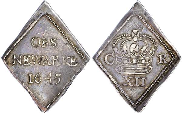 Charles I (1625-1649), Newark besieged, Shilling, 1645, large crown between C R, mark of value XII below, reverse OBS NEWARKE 1645 in three lines, wt. 5.92 gms. (S.3142; N.2640; Brooker 1225). Bold good very fine the reverse nearer to extremely fine.