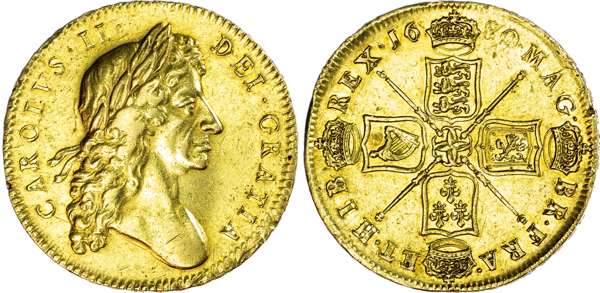 Charles II (1660-1685), Five-Guineas, 1680 struck over 79.