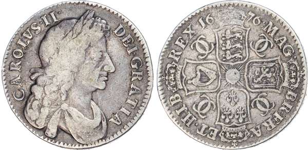 Charles II (1660-1685), Halfcrowns, fourth draped bust right, toothed border both sides, legend surrounds CAROLVS II DEI GRATIA. Rev, crowned cruciform shields, interlinked pairs of Cs in angles, garter star at centre, date either side of top crown, reads MAG BR FRA ET HIB REX. 1676 vicesimo octavo, 1679 Tricesimo primo, 1682 Tricesimo quarto (S.3367; Bull.471/480/493). The 1679 a bold fine if not