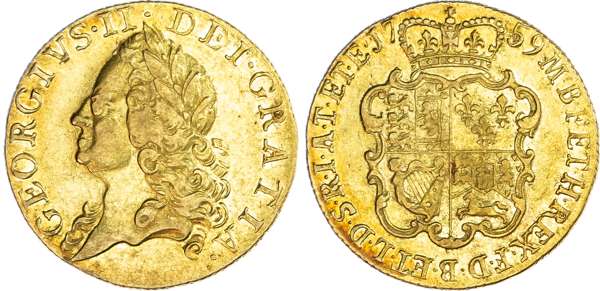 George II (1760-1820), 'Old Head' Guinea, 1759, old laureate head left, rev. crowned garnished shield, 8.29g (EGC 622; S.3680). Good fine to near very fine, ever so light reddish tone with underlying lustre.