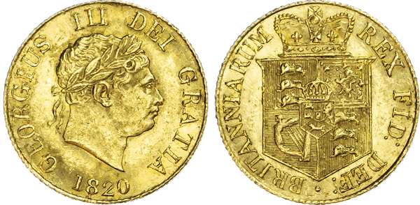 George III (1760-1820), Half Sovereign, 1820, laureate head right, date below, reverse, crowned shield of arms (S.3786). Near extremely fine.