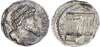 Kings of Numidia, Juba I (c. 60-46 BC) AR Denarius, 4.02g. REX IVBA, diademed and draped bust of Juba I facing right, sceptre over right shoulder. Rev. Octastyle temple, neo‑Punic inscription around. (Mazard 84 or 85; SNG Copenhagen 523-4). About Extremely Fine.