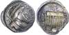 Kings of Numidia, Juba I (c. 60-46 BC) AR Denarius, 3.70g. REX IVBA, diademed and draped bust of Juba I facing right, sceptre over right shoulder. Rev. Octastyle temple, neo‑Punic inscription around. (Mazard 84; SNG Copenhagen 523-4). Reverse slightly off -centre. About Fine.
