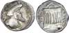 Kings of Numidia, Juba I (c. 60-46 BC) AR Denarius, 3.67g. REX IVBA, diademed and draped bust of Juba I facing right, sceptre over right shoulder. Rev. Octastyle temple, neo‑Punic inscription around. (Mazard 84; SNG Copenhagen 523-4). Fine.