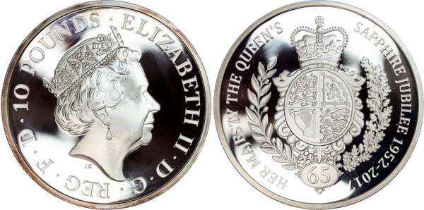 Elizabeth II (1952-2022), Ten Pounds (Five Ounce, Silver), 2017