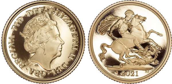 Elizabeth II (1952-2022), Proof Sovereign, 2021, crowned head right. Rev, Saint George slaying the dragon, date below, with ‘95’ crown privy mark (S. SC9M). In original Royal Mint box housed in capsule with CoA, as struck. Certificate of Authenticity 1033. Issued 7,995 (plus coins in sets).