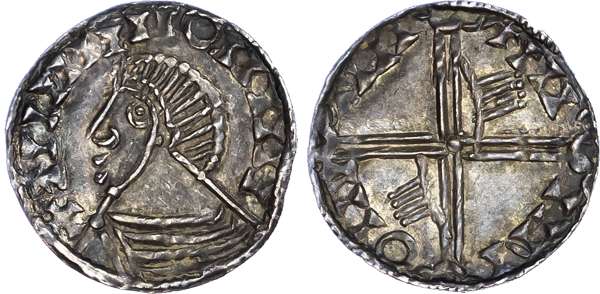 Ireland, Hiberno‑Norse (c. 1035-1055/60), AR Penny, Phase III, Long Cross type, 1.01g. Draped bust left. Rev. Voided long cross with ends terminating in three crescents, ‘hand’ symbols in two quarters. (SCBI BM 8; D&F 24; S. 6132). Good Very Fine. Slightly wavy flan.