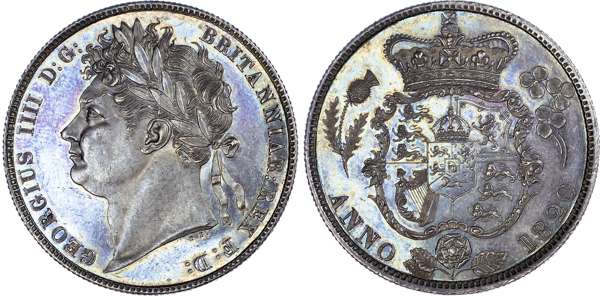 George IV (1820-1830), Proof Halfcrown, 1820, laureate bust right, reverse lightly garnished shield, milled edge, (ESC 629; Bull 2358; S.3807). As struck, exquisite blue/purple toning