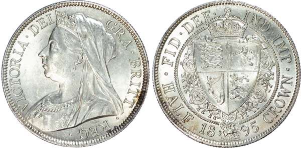 Victoria (1837-1901), Halfcrown, 1895, veiled head left, reverse crowned shield in Garter, edge milled, (Bull 2781; ESC 729; S.3938). Choice practically mint state, a well struck example.