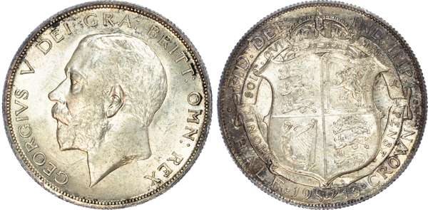 George V (1910-1936), Halfcrown, 1913, bare head left, reverse crowned shield within Garter, edge milled, (ESC 760; Bull 3712; S.4011). Choice virtually mint state, attractive steely tone with much underlying brilliance. Key date of the series.