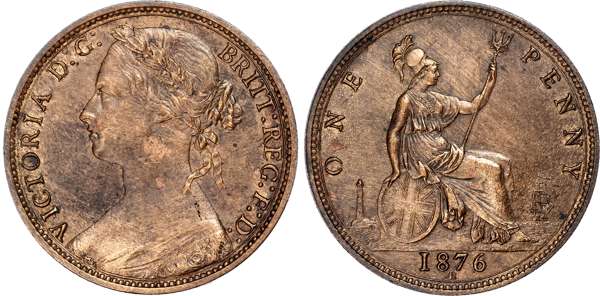 Victoria (1837-1901), Penny, 1876H, Heaton Mint, laureate bust left, reverse Britannia seated left, toothed border both sides, (F89 dies 8+K; BMC 1708; Gouby K; S.3955). Extremely fi ne, slightly burnished.