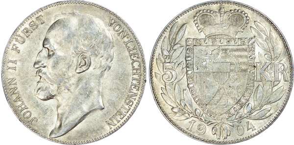 Liechtenstein, John II (1858-1929), silver 5 Kronen, 1904