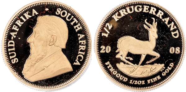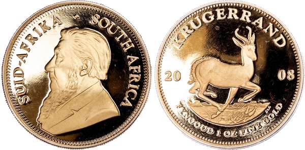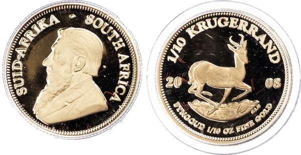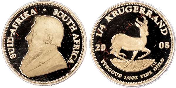 South Africa, gold Krugerrand Proof set, 2008, including: 1oz Krugerrand, 1/2 oz Krugerrand, 1/4oz Krugerrand, 1/10 oz Krugerrand, 33.93g, 16.96g, 8.48g, 3.93g (.916 purity). Uncirculated Proofs in the original box of issue, with a certifi cate. Limited edition of only 1,000 sets.