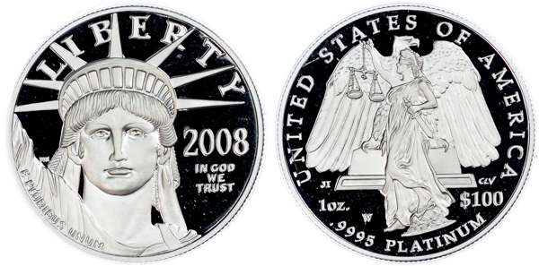 USA, American Eagle, platinum Proof Dollar, 2008, West Point, 31.12g (99% purity, KM 273). Uncirculated Proof in the original plush box of issue, with certifi cate.