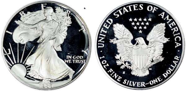 USA, American Eagle, Proof silver Dollar, 1986, San Francisco, 31.10g (KM 273). Uncirculated Proof in the original plush box of issue, with certificate.