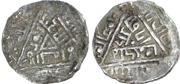 Abbasid, Al-Musta'sim, (AH 640-656 / 1242-1258 AD), silver 1/3 Dirham, triangle design, 0.93g (A. 277A). Good Fine.
